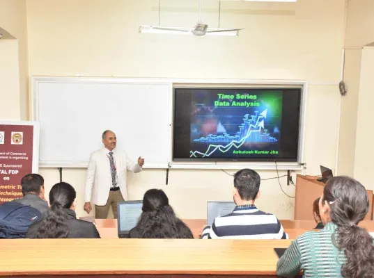 We have successfully inaugurated the Six Days FDP on Econometric Tools and Techniques for Research on 8th January 2024 The Chief Guest and Session Expert Prof.(Dr.) Narain Chandra, FMS-Delhi University shared his expertise with the 45 registered participants. The participants appreciated the experts' knowledge and university facilities extended to them by the FDP committee. The key learnings of the session were different methods of correlation, robust inference,box-cox transformations etc, and the econometric tools for data analysis.