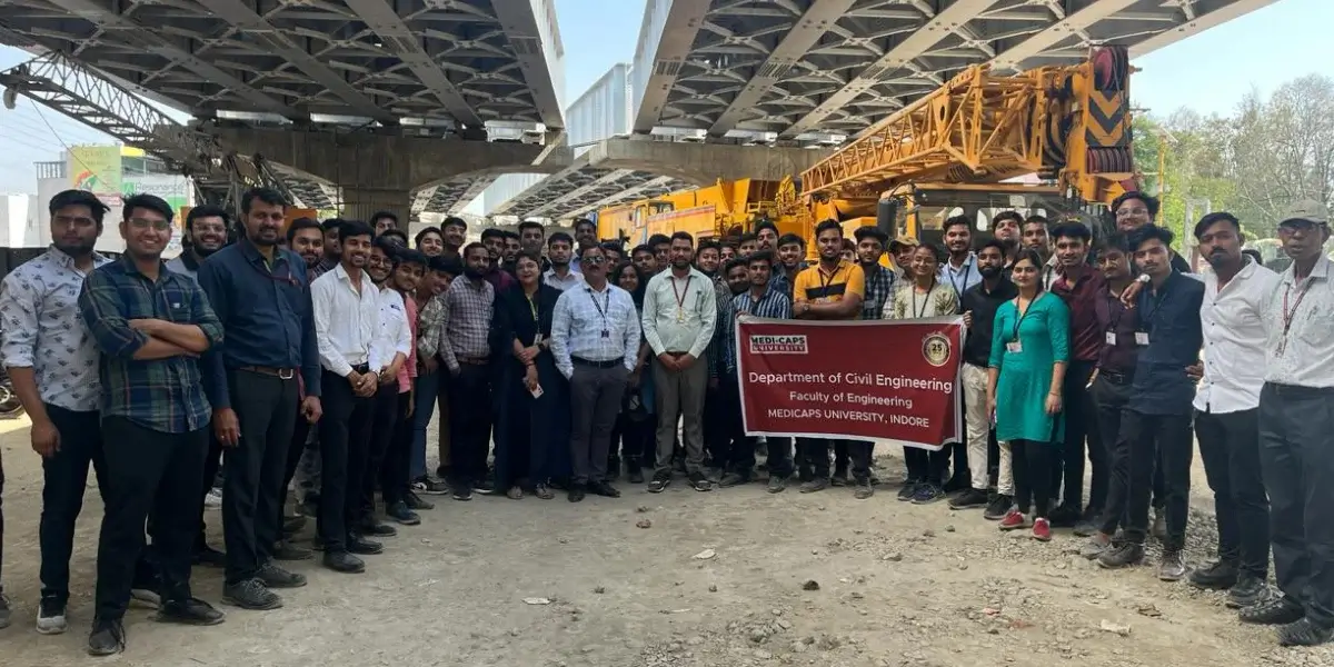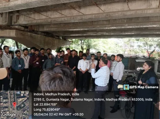 Industrial Visit of Footi Kothi Flyover Construction Site , We're thrilled to announce the successful completion of Industrial visit to construction site of flyover bridge under PATH(I) Ltd at Footi Kothi Indore, Dated 05/04/2024 for 2nd and 3rd year students of civil engineering department. During the visit, students had the opportunity to learn about Utilization of sustainable materials such as Geogrids, Geotextiles, Application of Steel Girder and Concrete Girder Applications & Retaining Wall Construction Techniques. The Detailed Site Insights explained by Er. Santosh Pal (PATH, India)