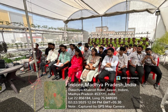 Educational visit to Hydroponics Training Centre, Dakachya, Indore The Department of Agriculture organized an educational visit for the sixth-semester students of B.Sc. (Hons) Agriculture. The key objectives of the visit are as follows. To familiarize students with hydroponic farming, a method of cultivating plants without soil, using nutrient-rich water solutions. To understand about critical factors to optimize resource use and promote sustainability. The student visit to the hydroponics training centre was conducted successfully and provided valuable educational insights into modern agricultural practices. Experts in the field guided the students through the practical applications of hydroponics, explaining the critical factors involved, such as nutrient management, water quality, and plant selection.