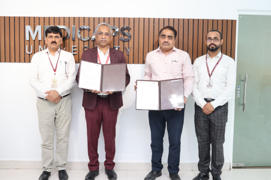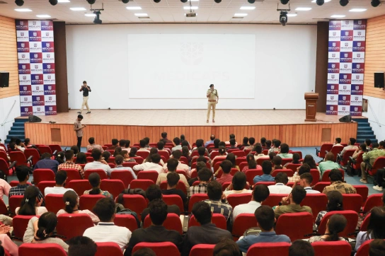National Science Day Celebration 2025 – Medi-Caps University, Indore On February 28, 2025, Medi-Caps University celebrated National Science Day with a full-day event organized by the Department of Agriculture and Department of Physics. The event was graced by Prof. (Dr.) Rajesh Kumar from IIT Indore as the chief guest, along with Hon'ble Vice Chancellor Dr. D.K. Patnaik, Dr. A.A. Koser (Dean of Academic Affairs), Dr. S.D. Upadhyay (Dean of Agriculture & DoPA), and Prof. V. Ganesan (Dean of Research Affairs). The celebration began with the lamp-lighting ceremony, followed by insightful addresses. The Vice Chancellor shared an inspiring anecdote about birds and highlighted the value of companionship, linking it to the essence of "Vigyan" (science) as specialized knowledge. Prof. S.D. Upadhyay spoke about C.V. Raman’s profound understanding of science, while Prof. Rajesh Kumar captivated the audience with simple yet thought-provoking explanations, including why the sun appears reddish in the morning and how the fundamental forces of nature are intuitively understood from childhood. The event saw enthusiastic participation from over 200 school children, students, and faculty members. A scientific quiz competition was also held, adding excitement and encouraging young minds to engage with science. Additionally, students had the opportunity to visit various departments, including Forensic Science, Biotechnology, Physics, and Chemistry, and also participated in an agriculture field visit, gaining hands-on exposure to different scientific domains.