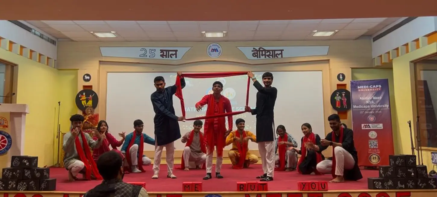 We are thrilled to share the success of the NSS Alumni Meet 2025, organized on 25th January, 2025 by the Medicaps Alumni Association and NSS Unit of Medi-Caps University. This historic event celebrated the spirit of service, unity, and shared experiences of NSS volunteers. Marking "25 Saal Bemisal", this milestone year brought together esteemed alumni and dignitaries, including Hon’ble Vice-Chancellor Prof. (Dr.) D.K. Patnaik, Mr. Palash Garg (OSD to Chancellor), Mr. P. Sulvainathan (Registrar), Mr. Sourabh Dave (President, Medi-Caps Alumini Association), and Mr. Ajay Sinha, who highlighted the impact of community service. The event began with badge pinning, Ganesh Vandana, and Lamp Lighting, followed by cultural performances— Folk Dance, NSS Geet, Poetry Recitation, and a Nukkad Natak on social awareness. Dr. P. Hari Krishna introduced our Alumni NSS volunteers, who shared inspiring stories. This was followed by a Lunch gathering, fostering a deep connection between past and present volunteers.