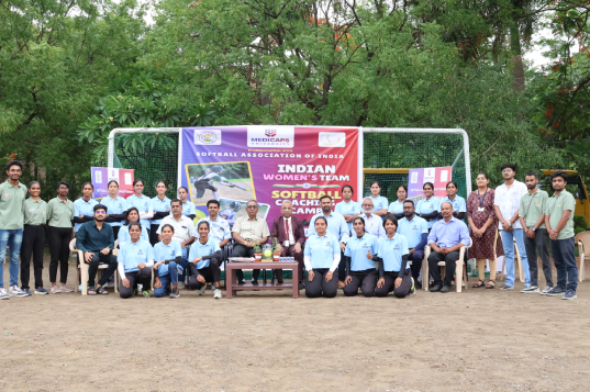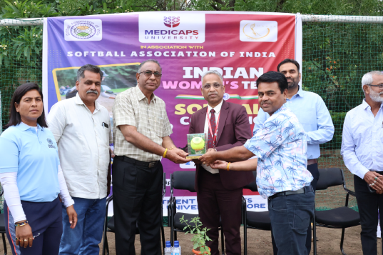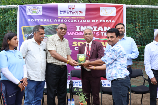 The International Women's Softball Team Camp organized under the joint aegis of the Department of Sports of the Medical University and the Indian Softball Association was inaugurated at the Medicaps University Campus. The camp will start from June 2 and will continue till June 10, with the aim of preparing women players for the upcoming Asian Championship to be held in China. The program was inaugurated by the Registrar Sir, Mr. P. Siluvanathan. On this Occasion, Secretary of the Indian Softball Association, Dr. Praveen Anokar, President of Madhya Pradesh Software Association, Mr. Rajkumar Sehgal, Coach of the Indian Women's Softball Team, Savita Parkhe, Mr. Rakesh Mishra and Sports Incharge of the University, Dr. Ruchir Lashkari were present. The guests interacted with the women players from various states participating in the camp and wished them good luck for future competitions.